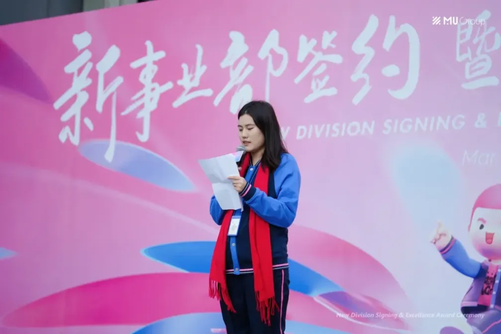 FrançaisL'arrivée du printemps, le monde est empli d'un sentiment de renouveau. Le 1er mars, la cérémonie de signature et de remise des prix de la nouvelle division du groupe MU s'est tenue simultanément à Ningbo et à Yiwu. Le président Tom Tang et les chefs de groupe Jeff Luo, Amenda Weng, Eric Zhuang, Sam Zhu, Amanda Chen étaient présents à Ningbo, tandis qu'Henry Xu, William Wang et Ken Huang étaient présents à Yiwu. Tous les collègues des nouvelles divisions, les collègues du 5e anniversaire, les collègues du 10e anniversaire, les collègues de Glory in MU for 20 years, les lauréats des prix et les étudiants du cours élémentaire de l'Académie MU étaient présents ensemble.